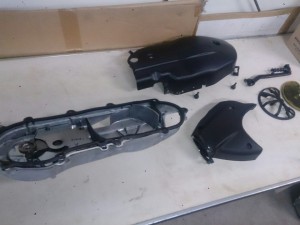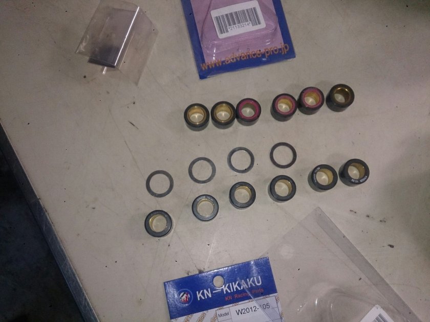 仕事の合間に、愛機シグナスX-SR(1YP)のウェイトローラーの交換作業しました。といっても、現在のKN企画の10.5gから国内仕様純正の11.8gに戻す作業です。
