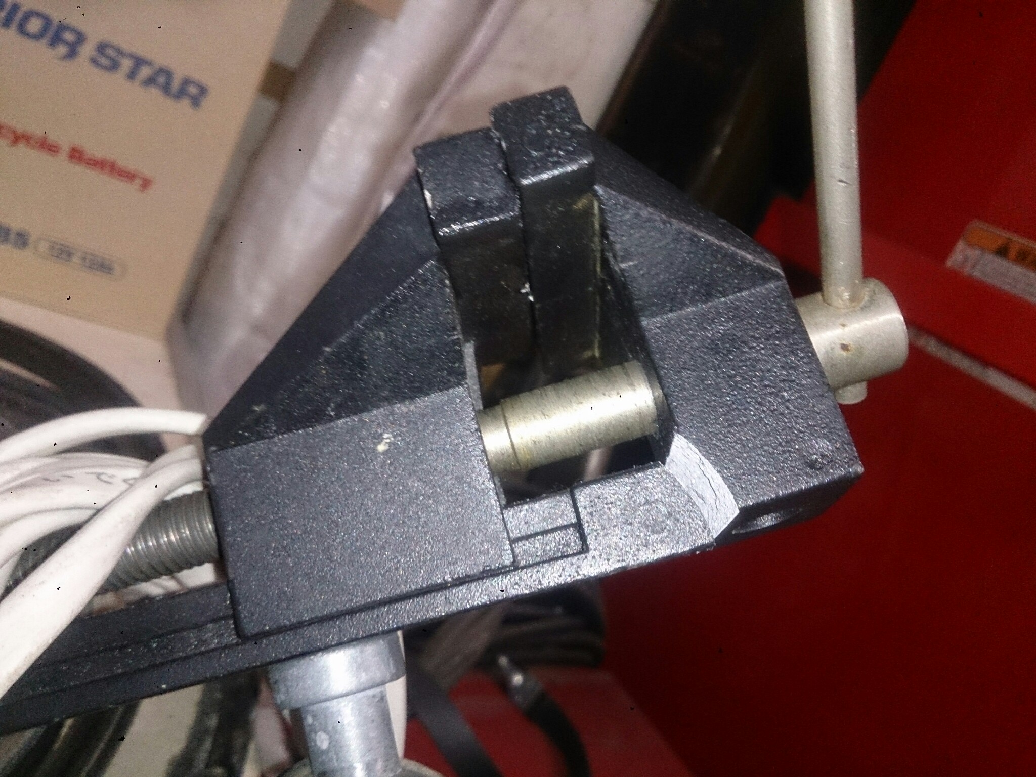 テンショナーのベアリングの圧入時に、何と当店の万力が破損!(涙)根元からもげてしまいました・・・(大汗)数年に一度くらいしか使いませんし、これも金属疲労(かれこれ15年くらい使ってます)なのでしょうか。