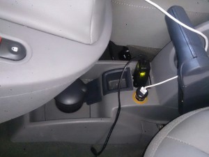 続いては、カングー2(通称デカングー)のお客様です。カングー2は、センターコンソールの画像の部分にOBDⅡコネクターがありますので、ここのめくら蓋を外してバックアップ電源を繋いでバッテリー交換作業を行いますが、ルノー車は、ACCがありますのでシガーライターソケットからバックアップを行うことも可能です。