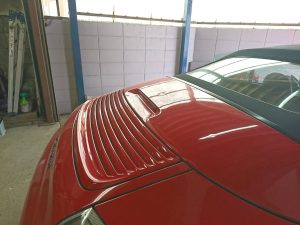 その剛性感には定評のある911のボディーをへこますくらいですので、相当な雹だったのは容易に想像出来ます。おそらく軽自動車だったら見るも無残な状態になってしまっていたでしょう。仕事柄、雹害車は何度か目にしていますが、万一、雹が降って来たらすぐに屋根のあるようなショッピングセンター等の駐車場に非難されるようにされてください。