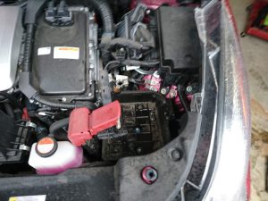 今日は、50系プリウスの補機バッテリーの交換作業がありました。この50系のモデルより、補機バッテリーの搭載場所がエンジンルーム内になった他、欧州車用バッテリー(EN規格)の規格であるL1サイズのバッテリーが採用されるようになりました。お客様にお話を伺いますと、丸4年でダメになったそうです。熱のこもるエンジンルーム内にバッテリーが搭載されるようになったからでしょうか。先代までのモデルより少しバッテリー寿命が短くなった印象です。