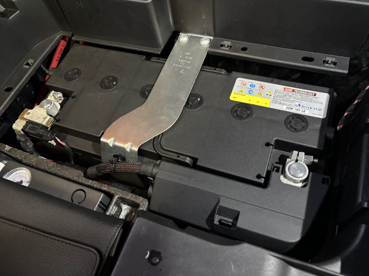 交換手順や方法は非ターボモデルと同じですが、バッテリーの本体寸法が大きくなり、オプション装着品でしょうか?ウーハーなどがあって作業スペースが無くなりますので難易度が高くなります。