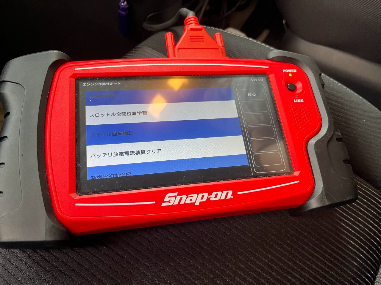 最後に、日産車では一般的に「バッテリー放電電流積算クリア」という作業を診断機で行う必要があります。所謂リセット作業と言われてるもので、バッテリー交換時にそれまでのアイドリングストップの回数をリセットしてやる作業になります。