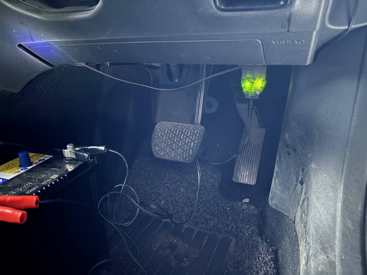 バックアップバッテリーの場所 位置は、助手席足元のカーペットを外してフロアを捲りあげたところになります。