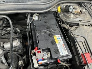 バッテリー上面のカバーを取付け、ワイヤーも元あったようにカバーに取り付けて作業終了です。メルセデスの場合、長くとも30分程度でアイドリングストップ機能も復活します。