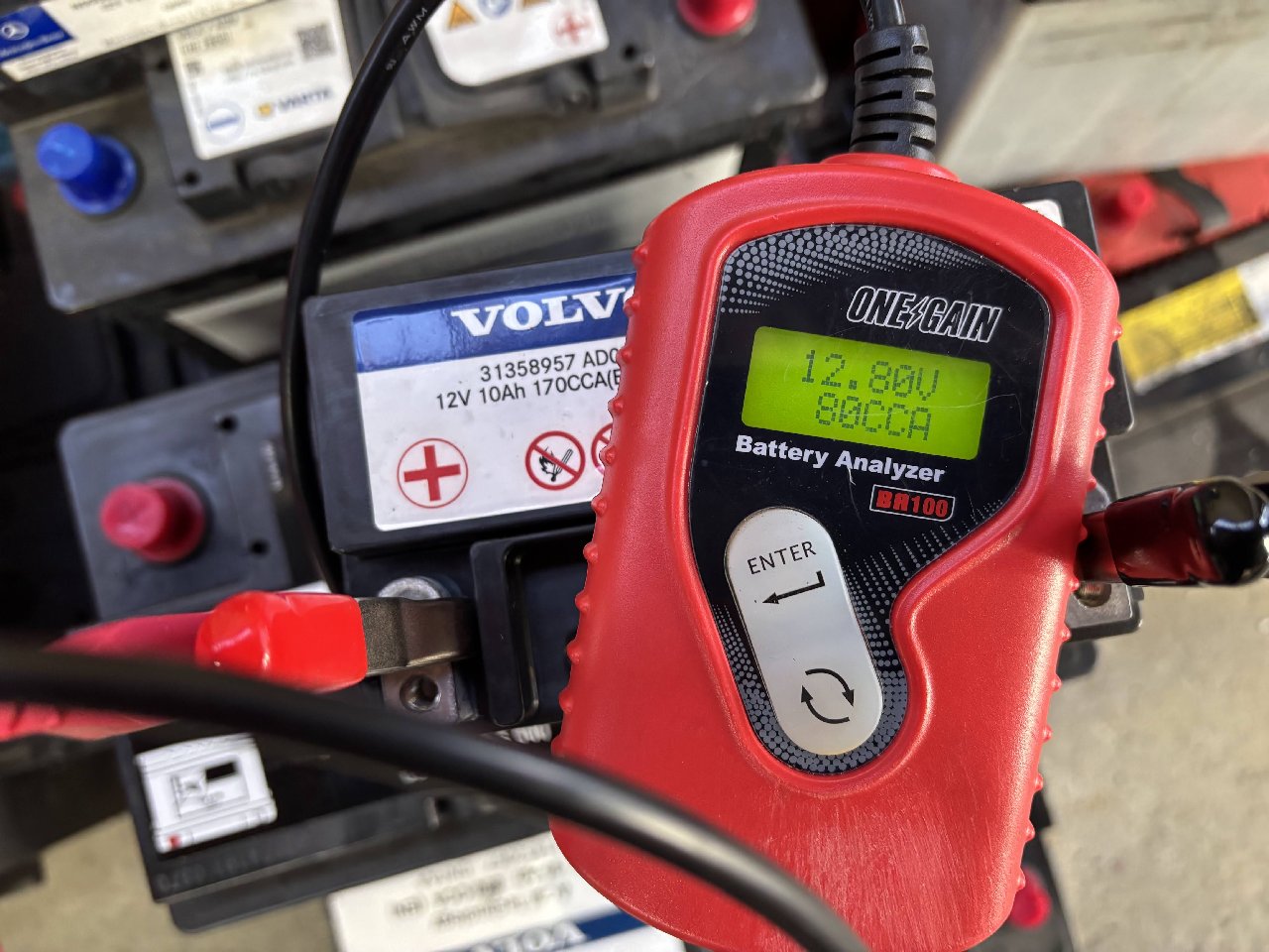 念のためにCCAテスターにかけてみたところ、カタログスペック170CCAのところ、実測値80CCAと50%以下でしたので「要交換」で間違いありませんでした。
