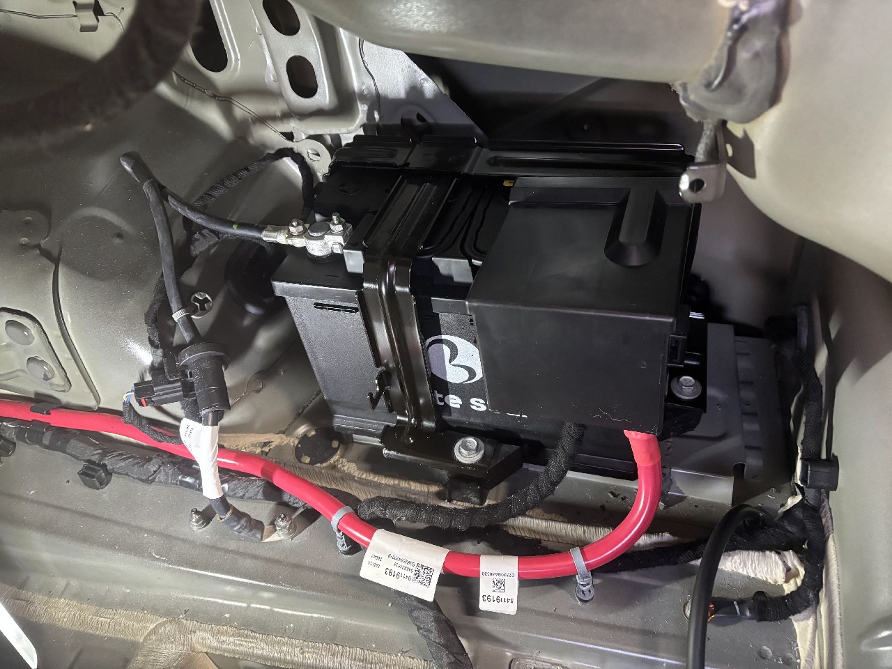 旧バッテリーを取り外したところです。70Ah L3規格のAGMバッテリーが採用されています。